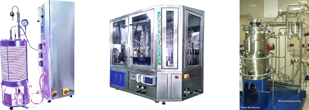 A Photo Bioreactor (PBR) is a controlled system that uses light to cultivate phototrophic microorganisms like microalgae and cyanobacteria. Biojenik Engineering provides scalable PBR solutions from lab to industry, built with durable borosilicate glass and stainless steel. Our in-situ sterilizable designs feature advanced lighting, aeration, and real-time monitoring, ensuring precision, automation, and scalability for both research and large-scale production.